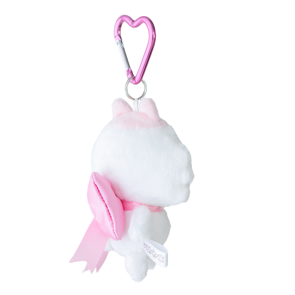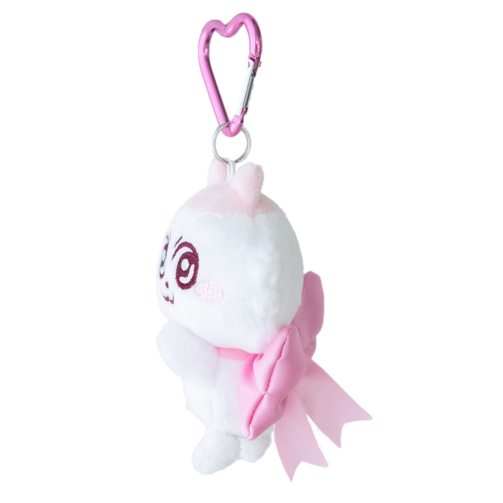 ハート形のカラビナがポイント。リボンでドレスアップした姿のンめねこがキュート。